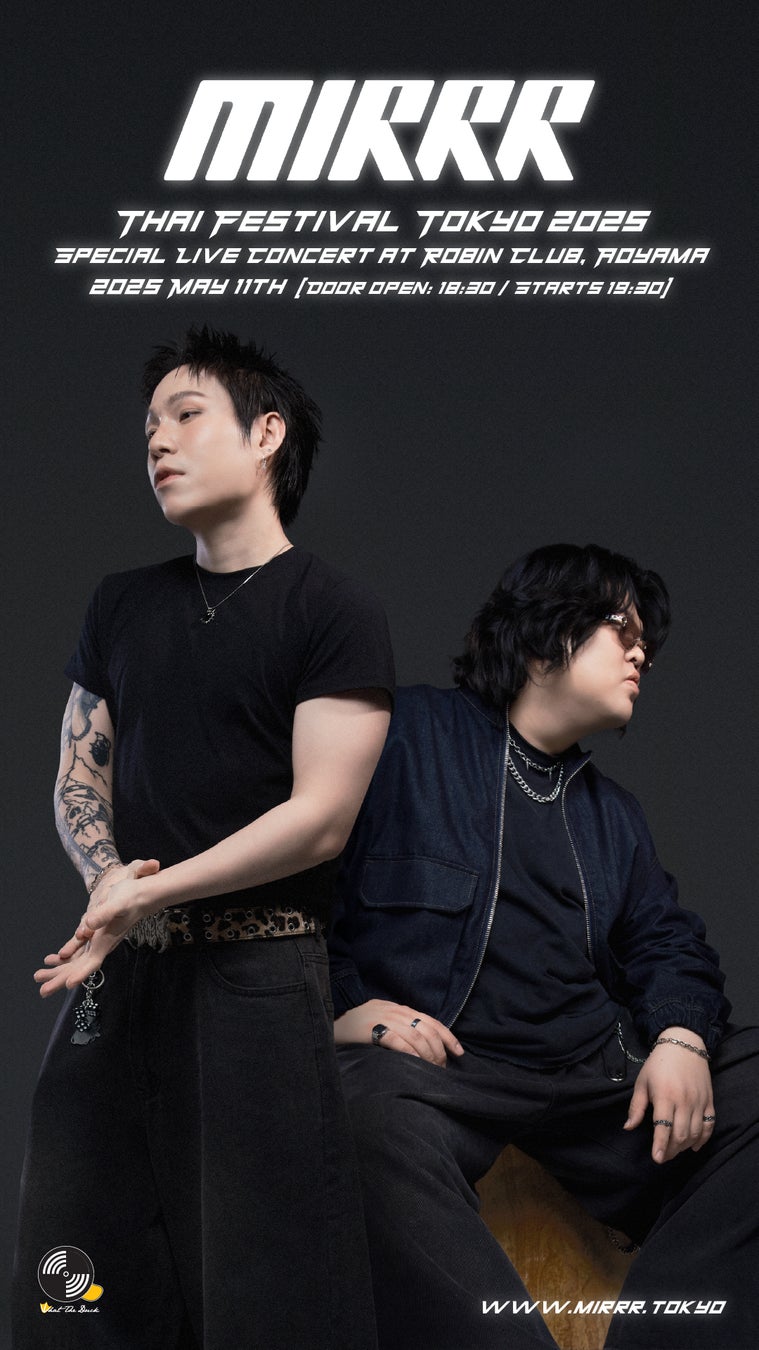 タイフェスティバル東京2025のスペシャルライブイベント“Mirrr -Thai Festival Tokyo 2025- Special Live Concert at Robin Club” にて、タイから東南アジア、世界へとファンを広げる、今まさに飛躍を遂げるアーティスト、Mirrrが、2025年5月11日(日)青山Robin Club にて単独公演開催!代表曲「Fireworks」「Heartwall」「My Favorite」「nicotine」など、YouTubeで合計3億回以上再生を突破、全楽曲のSpotify累計再生数は3億回以上、まさに“今、若い世代に聴かれている”アーティストのひと組。シンセポップ、R&B、インディーロックを縦横無尽に行き交い、ノスタルジーと近未来な感覚がが交差するMirrrのサウンドは、タイの新たな音楽シーンを切り開く。