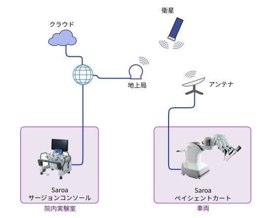 なお、「Saroa サージカルシステム」は2023年5月に日本国内にて薬事承認を取得しましたが、衛星通信や、その他通信を用いた地理的に離れた施設間での遠隔手術は、薬事承認範囲に含まれていないことより、本実証には本実証専用機を用いました。