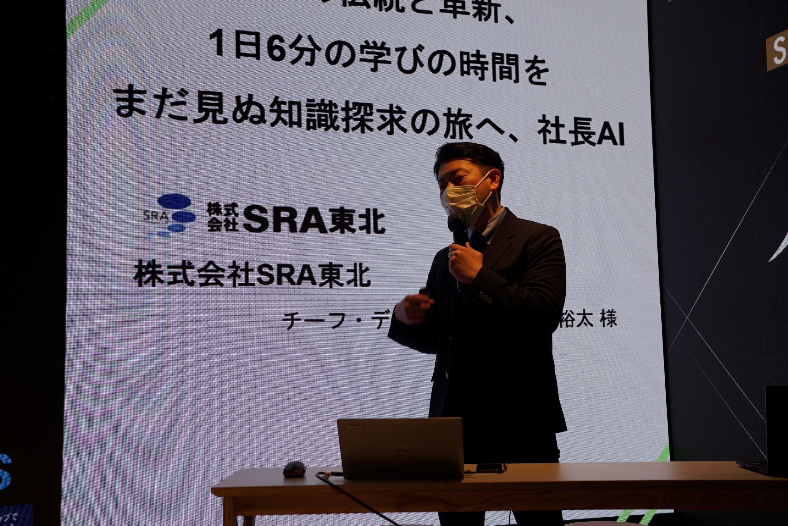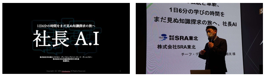 ■優秀賞|株式会社SRA東北「社長A.I」(発表者:ビジネスディベロップメント チーフディレクター 我妻裕太氏)