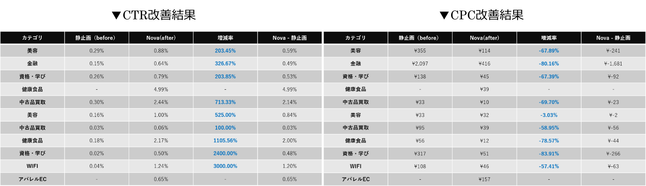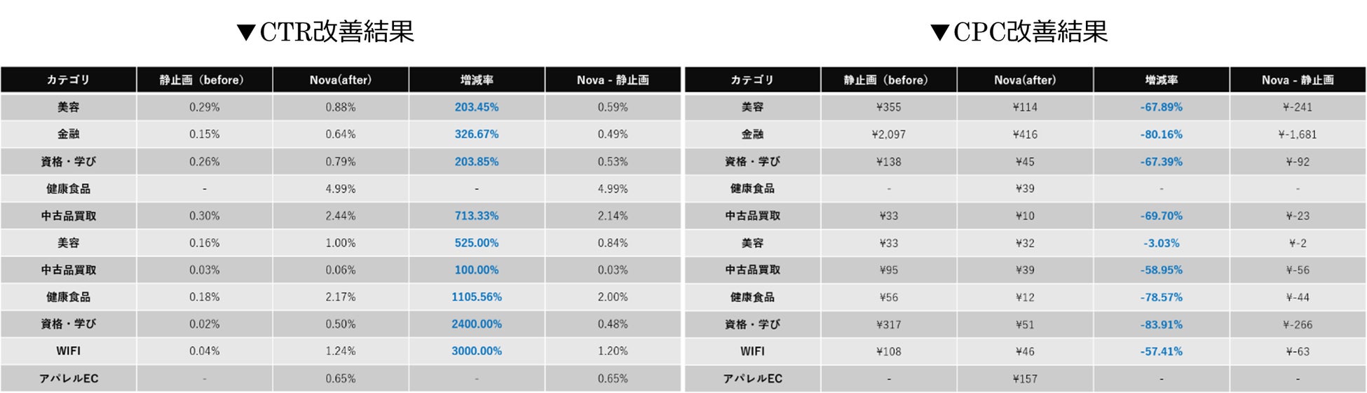 しかし、この「Nova」が日本国内で効率的に展開するには、「マーケット・インを目的とするテストローンチ」「導入事例の確保」「ローンチ後の拡販体制」という視点からマーケットを見極める必要がありました。そこで、当社が提供する日本国内への導入作業から検証までを一括サポートできる事例データ収集プラットフォーム「タメセル:(以下:タメセル)※1」を活用していただき、実証実験を行いました。その結果、日本国内で「Nova」を展開した場合にCTR(クリック率)やCTC(獲得クリック率)が最大で30倍改善する結果となりました。これを受け、2021年9月よりそれまで限定的に展開されていた「Nova」の一般販売がスタートしました。