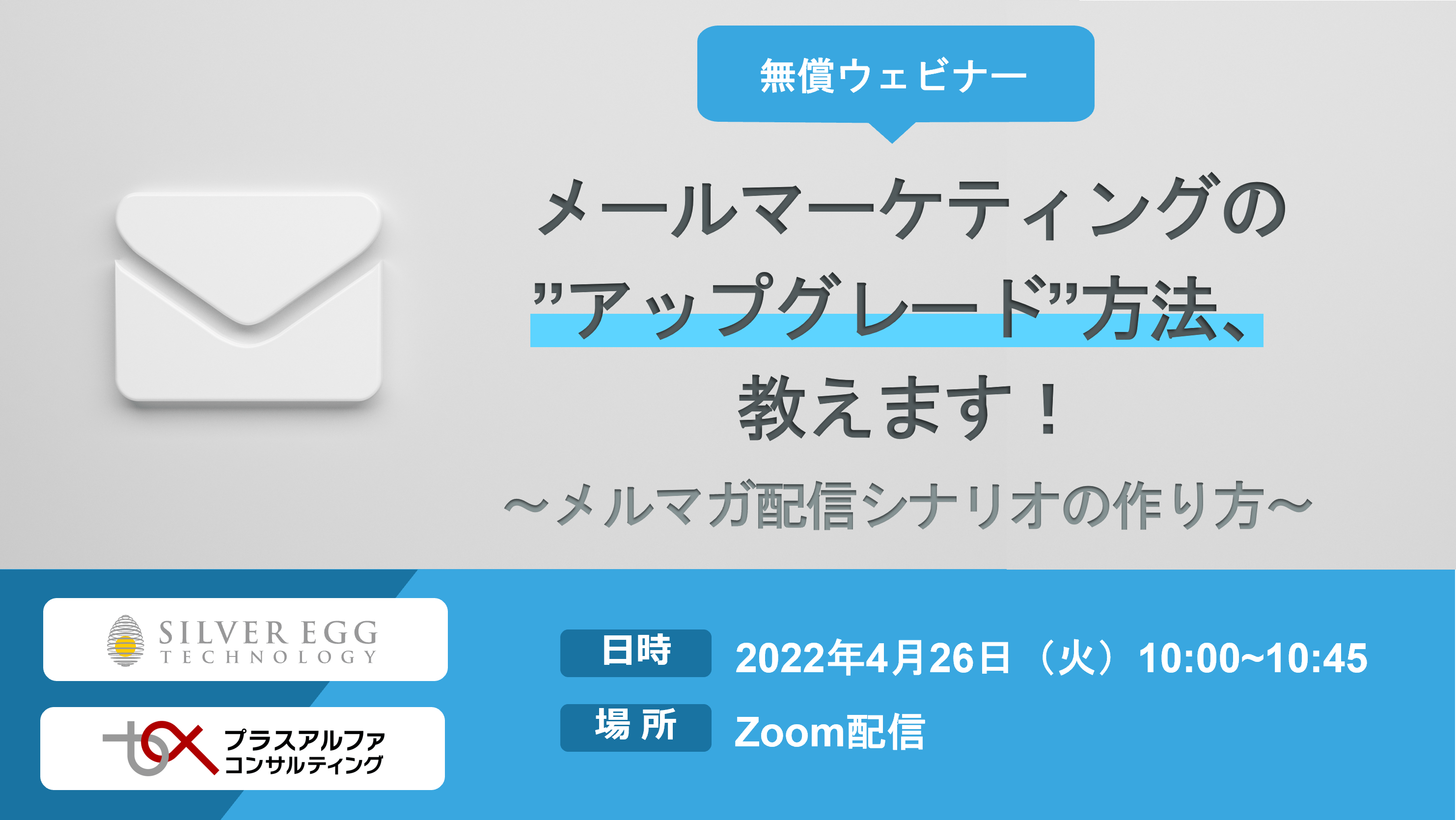 参加登録U R L:https://www.silveregg.co.jp/archives/event/2022-04-26-PlusAlpha-Mail-Scenario-webinar