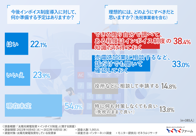 インボイス制度の導入で太陽光発電投資の売電機会が損なわれる!?インボイス制度適用後の準備をしてる方の割合とは