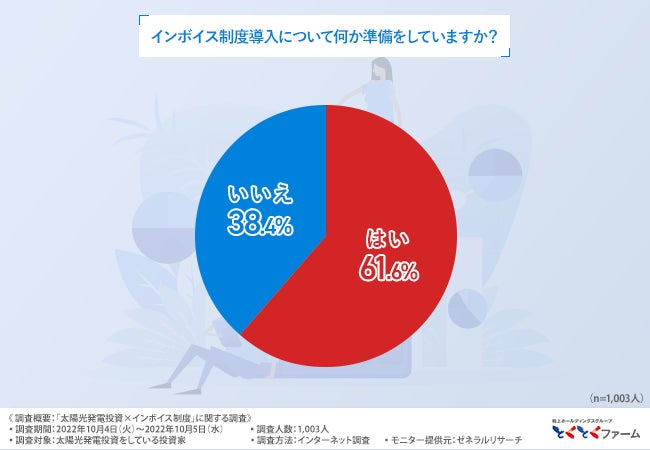 そこで、「インボイス制度導入について何か準備をしていますか?」と質問したところ、『はい(61.6%)』『いいえ(38.4%)』という回答結果になりました。