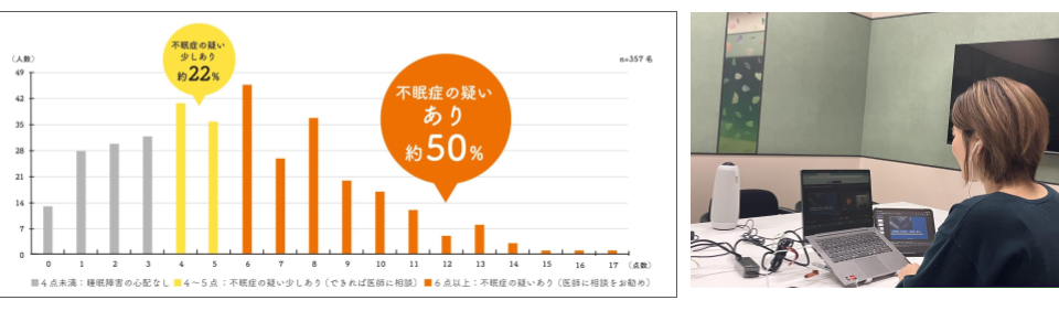 ※1:アテネ不眠尺度:世界保健機関(WHO)が中心となって設立した「睡眠と健康に関する世界プロジェクト」が作成した世界共通の不眠症の判定方法。8つの質問に対する回答を最大24点で数値化し、不眠度を測定。