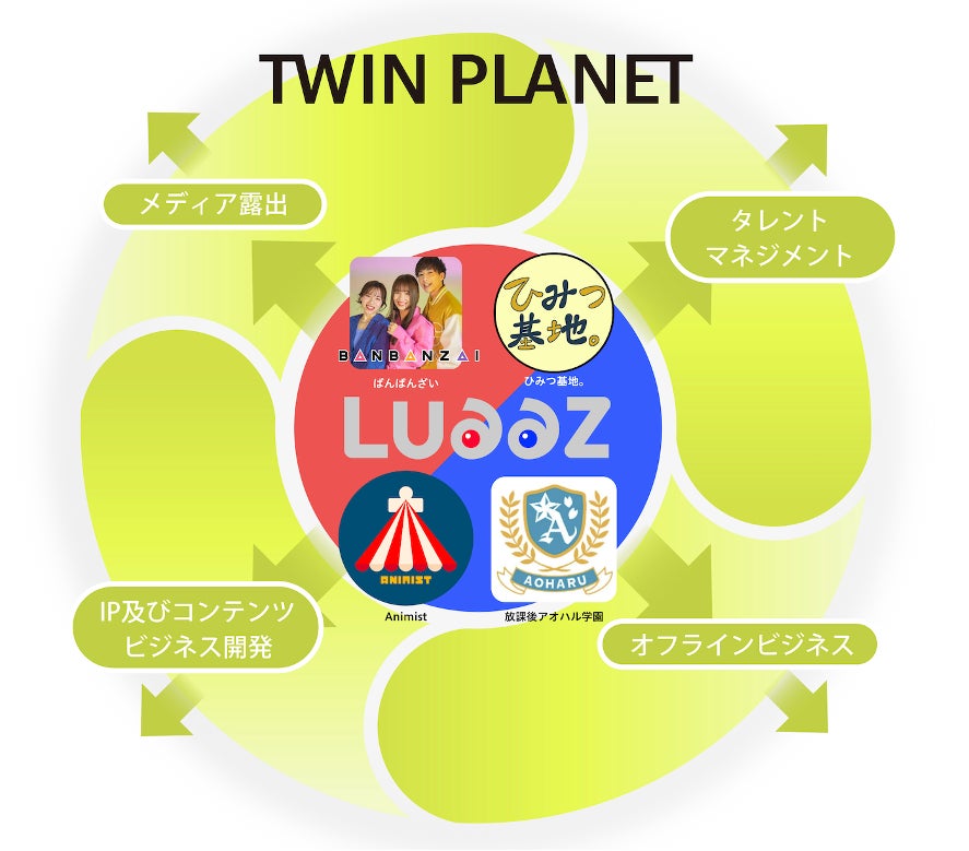株式会社LuaaZ(代表取締役 室松 良柾/東京都渋谷区)は、当社のタレントマネジメントおよびコンテンツプロデュースのさらなる発展を目指し、株式会社TWIN PLANET(ツインプラネット)(代表取締役 矢嶋健二/東京都渋谷区)と業務提携を行うことをお知らせいたします。
