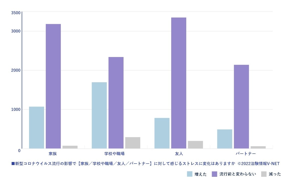 臨床試験被験者募集支援サービスを行っている株式会社ヒューマンリンク(本社:大阪府大阪市 / 代表:赤西 芳樹)は、2022年3月16日(水)~4月17日(日)にかけて行った、“コロナ禍におけるストレス変化に関するアンケート”の集計結果を同社が運営する治験情報サイト「V-NET」でお知らせいたします。