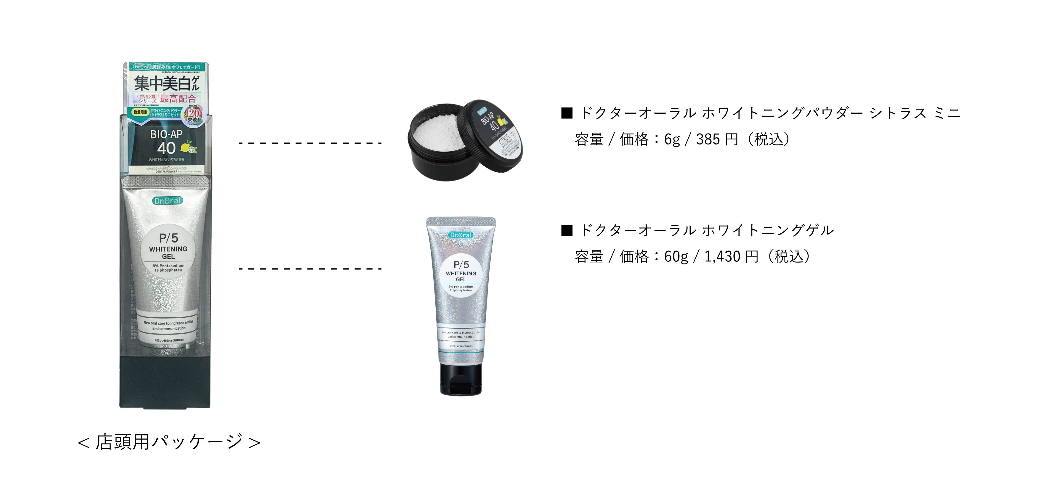 2023年3月より先行発売し展開スタートした「ホワイトニングゲル」は、発売以来ご好評をいただきSNSでも話題沸騰中。先日X(旧Twitter)のオーガニック投稿にて3359RT、3.6万いいねを頂く“バズり”を生み、Amazonの在庫が一時欠品するなど、大変人気の商品となっております。外出時にマスクを外す方も増えてきた今、歯の黄ばみ対策への需要が高まってきていることを受け、この度シリーズ内人気No1の「ドクターオーラル ホワイトニングパウダー シトラス」のミニサイズをセットにした「集中美白ケアセット」を発売することとなりました。