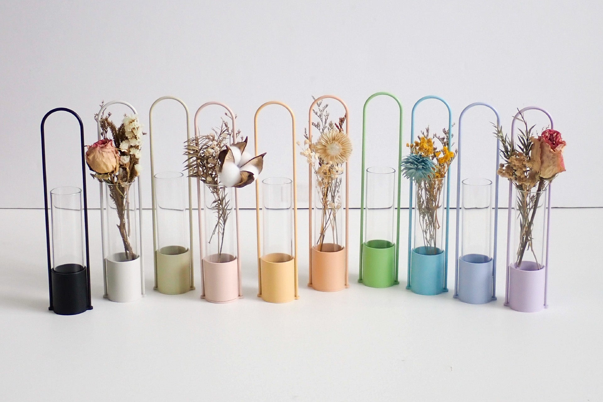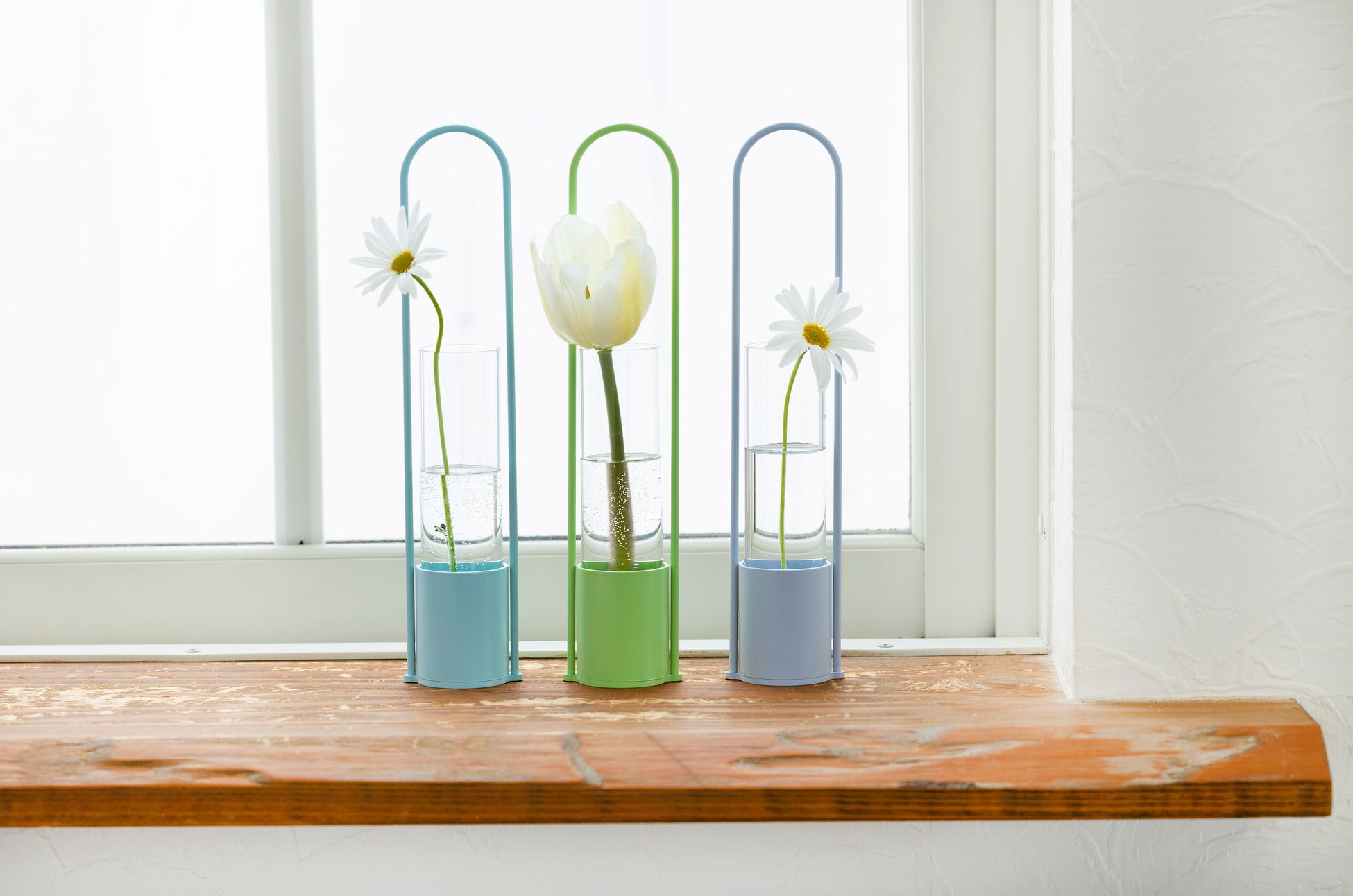 本体にスチールパイプを使用したフラワーベースです。好評の既存4色に、新色6色をプラスした計10色展開。植物と淡い本体カラーの組み合わせにより、空間に彩りを加えます。ステーショナリーやフレグランスを飾るなど、工夫次第でさまざまな使い方を楽しめます。