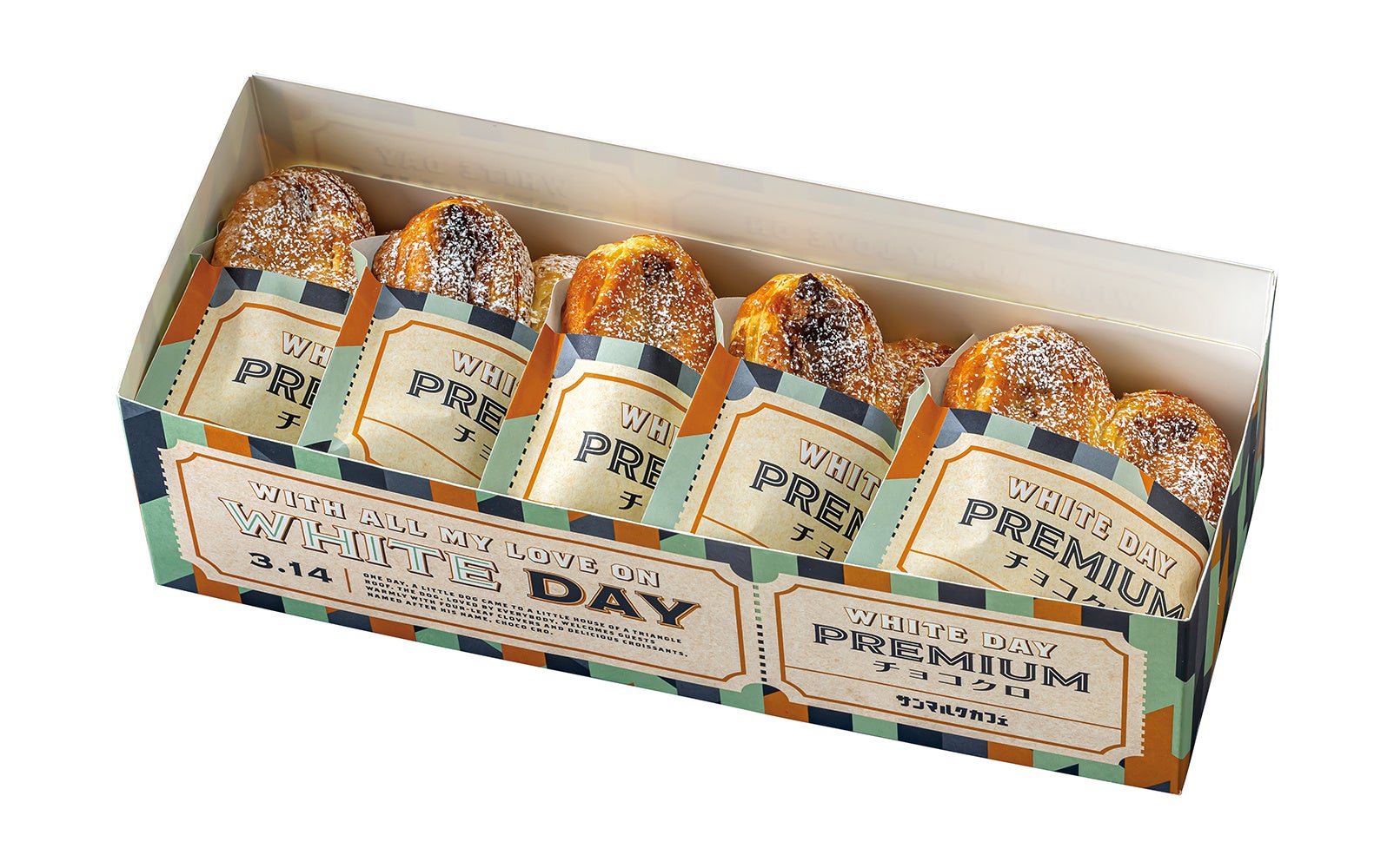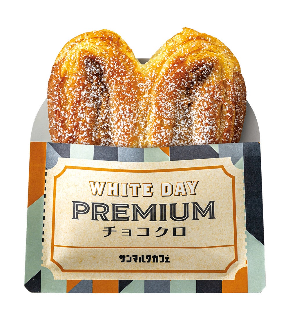 この期間ならではのハート型のチョコクロは、今しかお求めいただけない特別な商品となっております。見た目も可愛いハート形の『プレミアムチョコクロ ホワイト&キャラメル』、ぜひお近くのサンマルクカフェでお買い求めくださいませ。