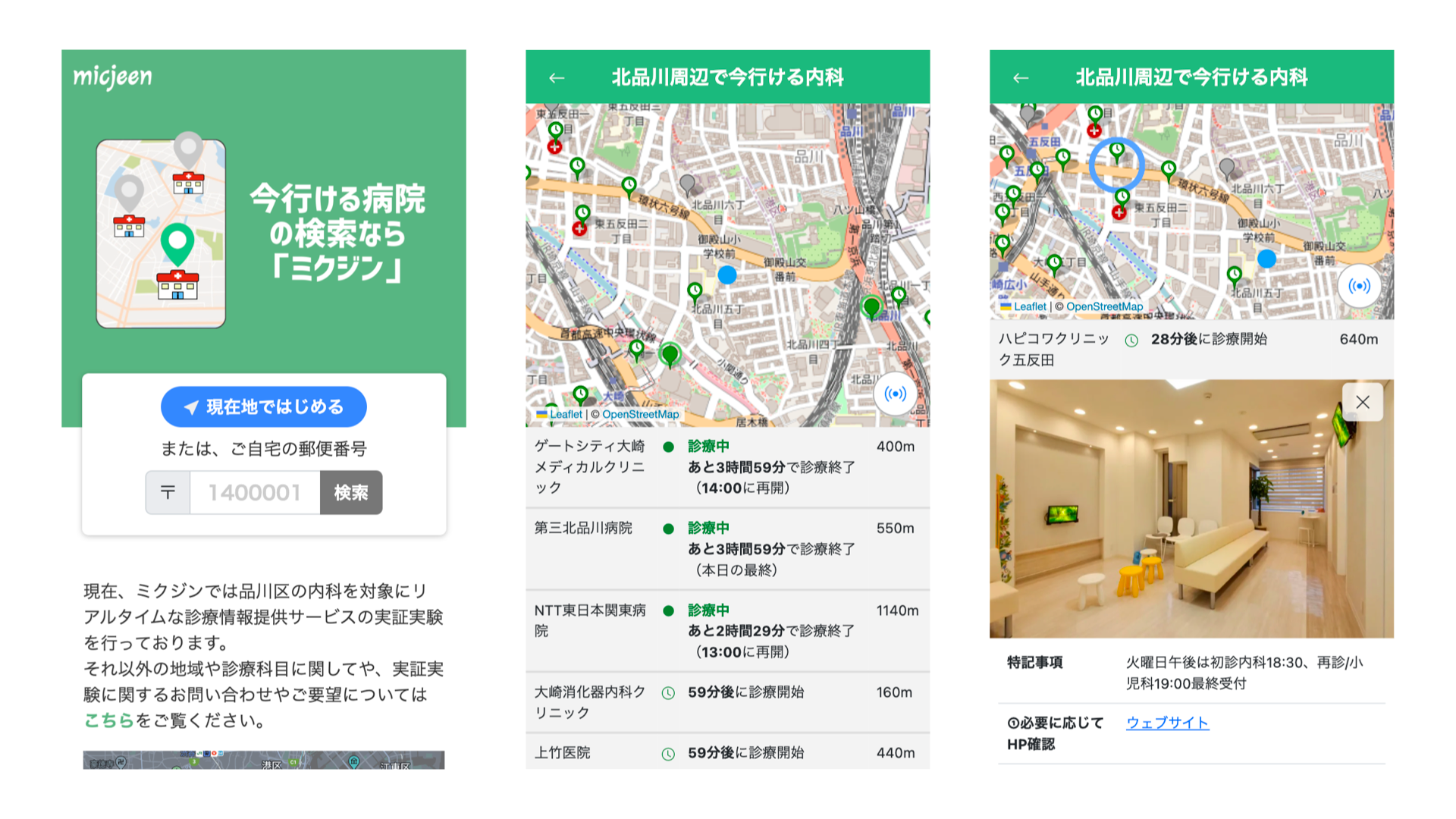 「今行ける病院」検索サービスmicjeenが実証実験を開始
