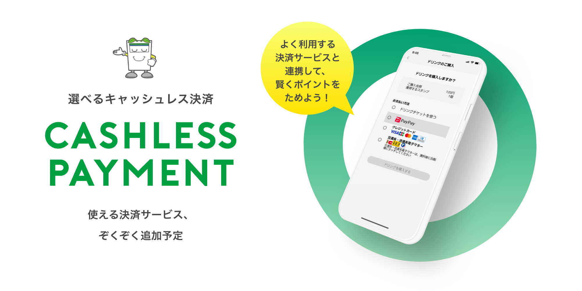 また、後述の独自スタンプサービスに加えて、各決済サービスのポイントを貯めることができます。