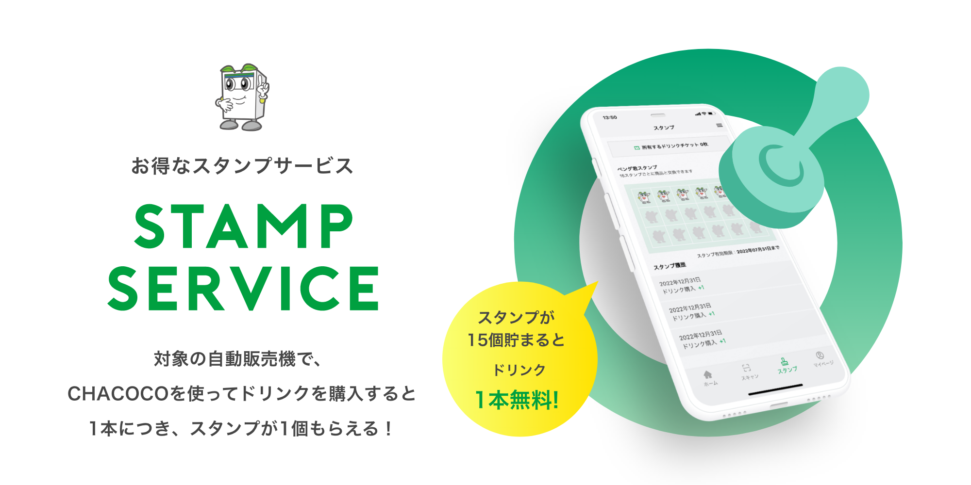 「CHACOCO」は、『スムーズな決済』『スタンプサービス』などの機能を備えた自動販売機アプリです。機能にフォーカスすることで、シンプルで分かりやすく利便性の高いアプリを実現しました。