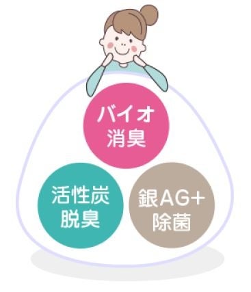 ・ インテリア製品を始めとし、有名ホテルや自動車、航空機の内装にも多数採用されている当社開発の消臭加工技術をベースに、ご家庭でも気軽にその効果を感じていただけるように機能をプラスした独自の消臭フィルター「トリプルフレッシュ®バイオフィルター」を使用。