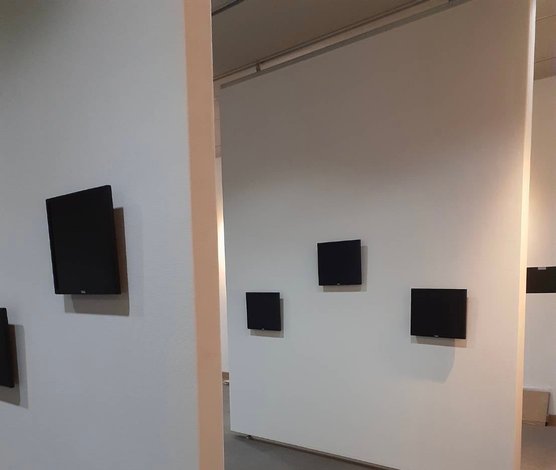 ③AIによる自動制作アート作品の展示会「DEEP ART展」40台のモニターで展示