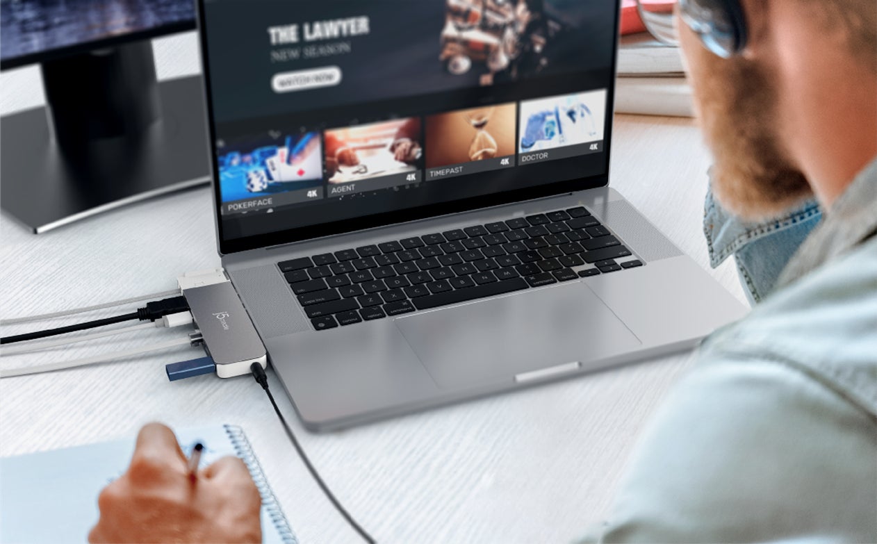 本製品は、MacBook Pro/Airを一気に7つの機能を拡張できる専用マルチアダプターです。MacBook Pro14インチと16インチなど、左側にMagSafe3充電と3.5mmオーディオを搭載したモデルにピッタリです。付属のMagSafe3保護ケースにて、充電ケーブルを含めて全てのケーブルを一気に抜き差しすることができるデザインがポイントで、よくパソコンを持ち運ぶ人にも最適です。また、本機の3.5mmプラグは取り外せるので、プラグを取ってから13インチや15インチやMacBook Airにも接続できます。USB4パススルー、4K60 HDMI、有線LAN、10Gbps USBハブなど高性能なポートを備えて、一気にMacBookの潜在能力を引き出します。