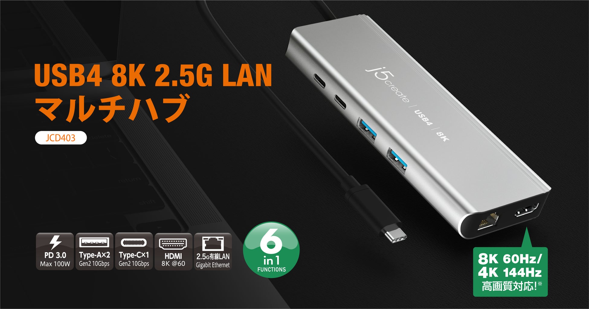 『USB4 8K 2.5G LAN 6in1マルチハブJCD403』
