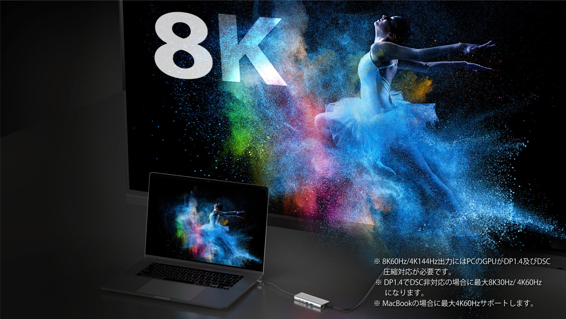 本機のHDMI最大表示解像度は、8K60Hzまたは4K144Hzまで対応しています。高画質8Kテレビに接続して自宅でのんびりとホームシネマを楽しむことができます。高性能な処理機能にて、高リフレッシュレートに対応しています。高いリフレッシュレートを特長としているゲーミングモニターにも利用頂けますので、ゲーミング使用環境にもお薦めです。