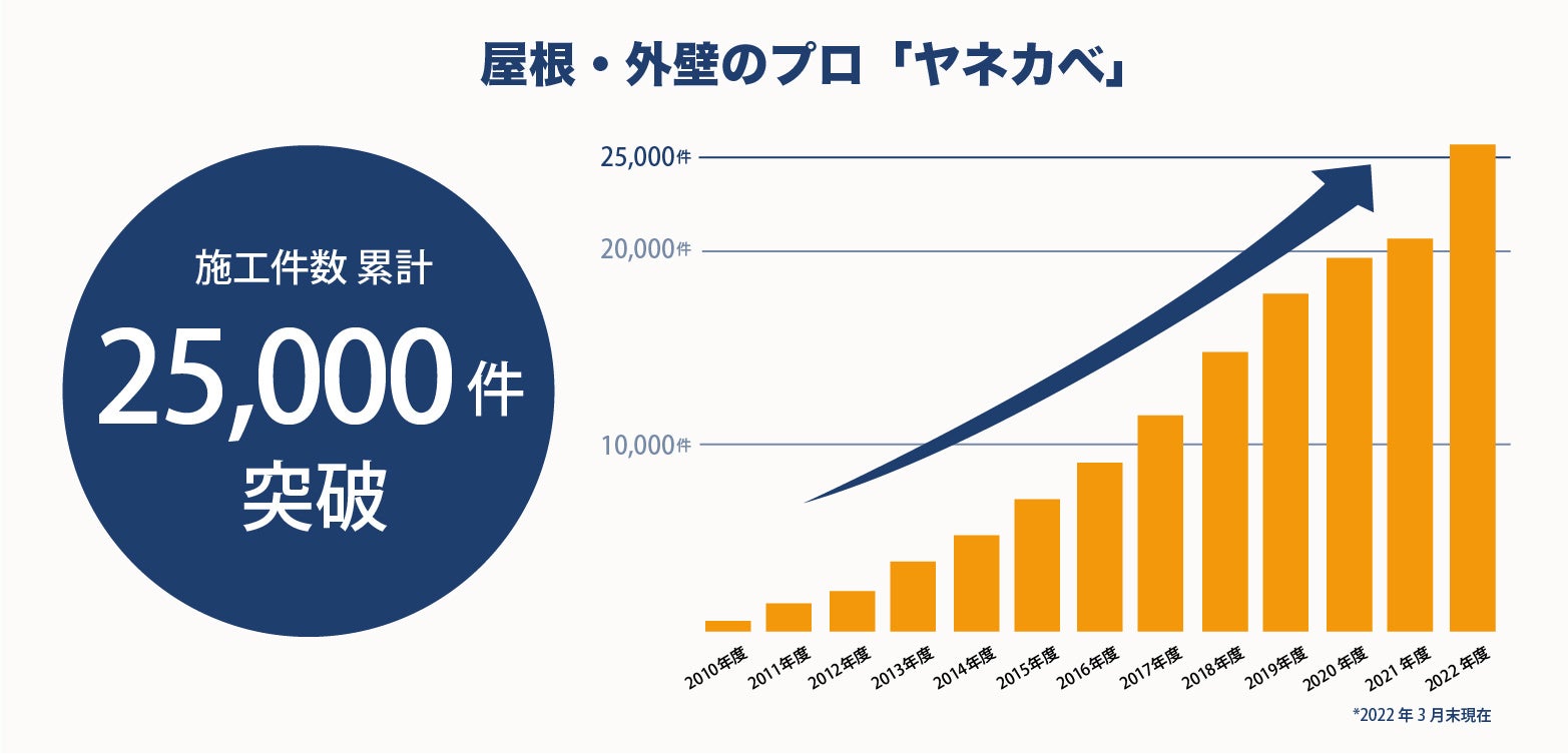 屋根・外壁のプロ「ヤネカベ」累計施工件数25,000件を突破