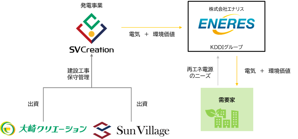 | 発電事業者 | 株式会社サンヴィレッジ 合同会社SVクリエーション 及びサンヴィレッジが出資するSPC |