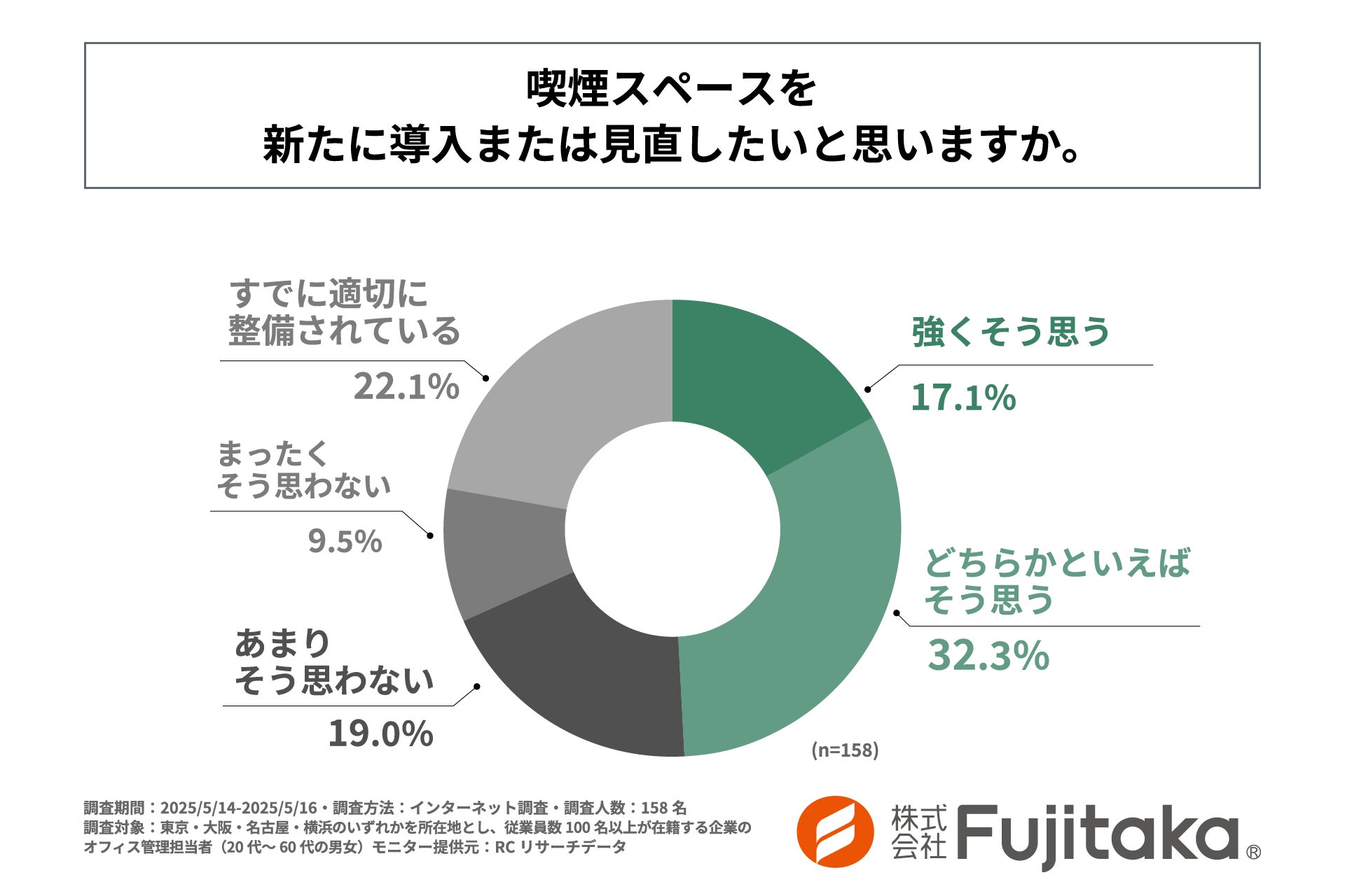 オフィス管理担当者の約半数が「喫煙スペースを新たに導入、または見直したい」と考えている!株式会社Fujitakaが「オフィスの喫煙スペース」に関する実態調査を実施!