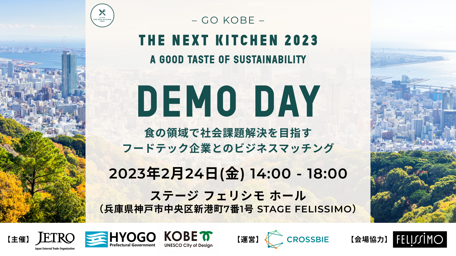 日本貿易振興機構 (JETRO)、兵庫県、神戸市は京阪神スタートアップ・エコシステムのグローバル化及びSDGs達成に向けたソーシャルインパクト創出に向けた取り組みを強化することを目的として、欧州のスタートアップ支援機関と連携し、欧州フードテック企業と日本の企業とのビジネスマッチングを促進する「GO KOBE: The Next Kitchen 2023 ~ A Good Taste of Sustainability~」を昨年9月より実施しています。