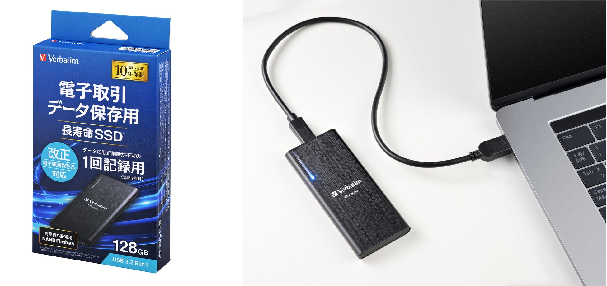 Verbatim Japanは、電子取引データなど訂正削除が不可のデータを長期間保存するのに適した128GBの容量をもつ「長寿命SSD(1回記録用)」を発売します。