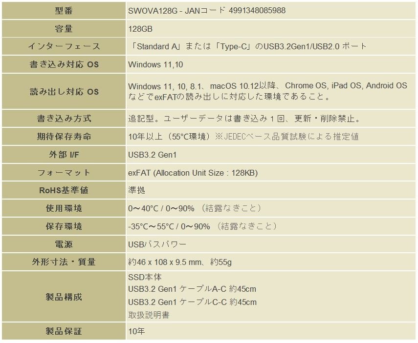 電子取引データ保存用 長寿命SSD(1回記録用)128GB