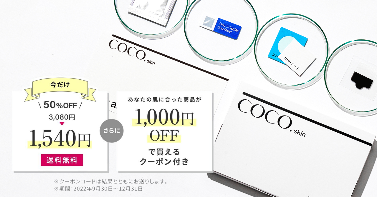 COCO.skinサービス開始1周年を記念して、通常価格:3,080円▶特別価格:1,540円(50%OFF)で販売
