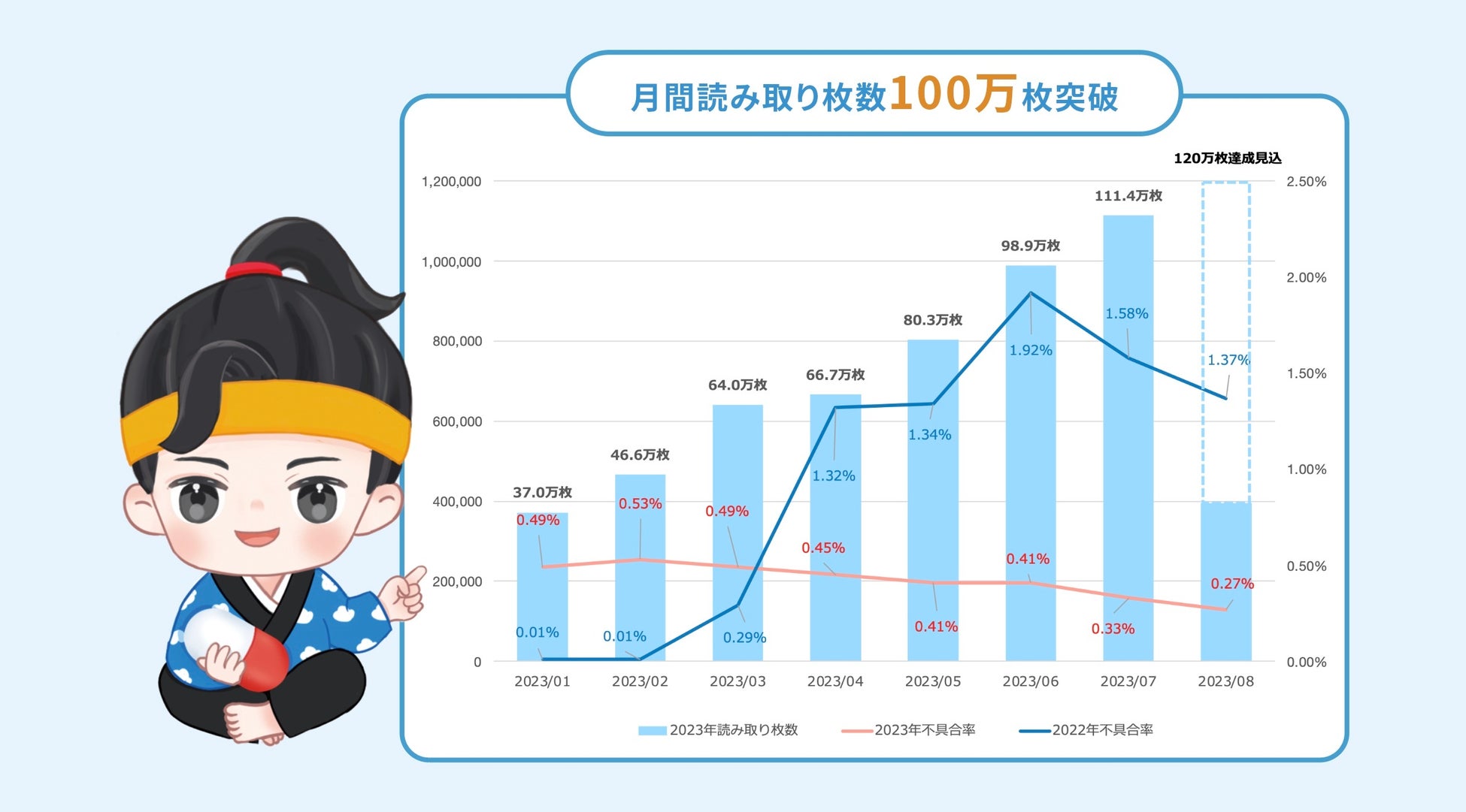 2023年8月末には月間の読み取り枚数が120万枚を超える見込みです。