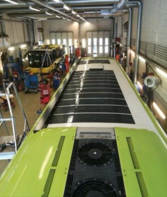 [フレキシブルソーラーパネル(バス天井装着例)]