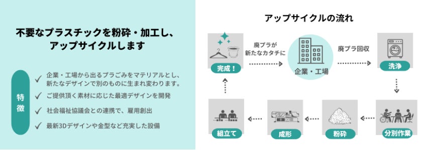また、企業はこの再生材化材料のまま購入し、自社内でアップサイクルすることも可能です。