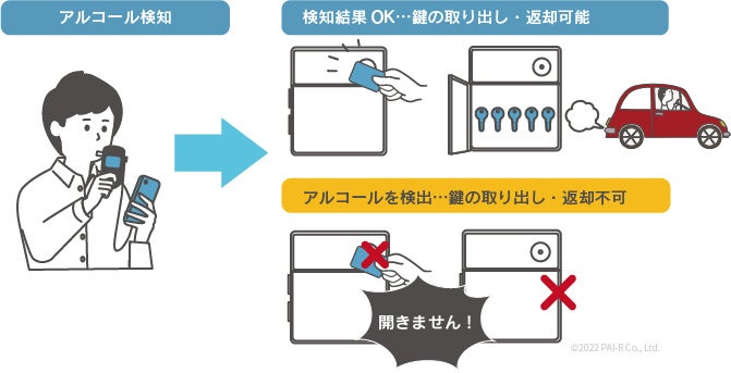 キーボックスとアルコールチェックの連携で車両をインターロック化