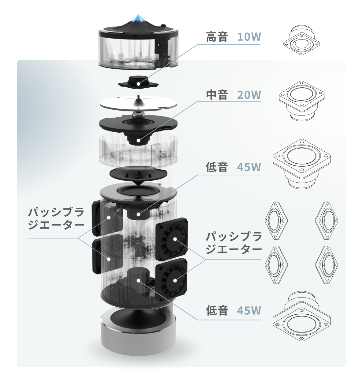 実験、分析を何度も繰り返し、ウールフェルトを細部に追加しました。これにより、心地良い高音を実現し、一般スピーカーによくある高音の耳障りな音を軽減。また、長時間聴いても疲れません。