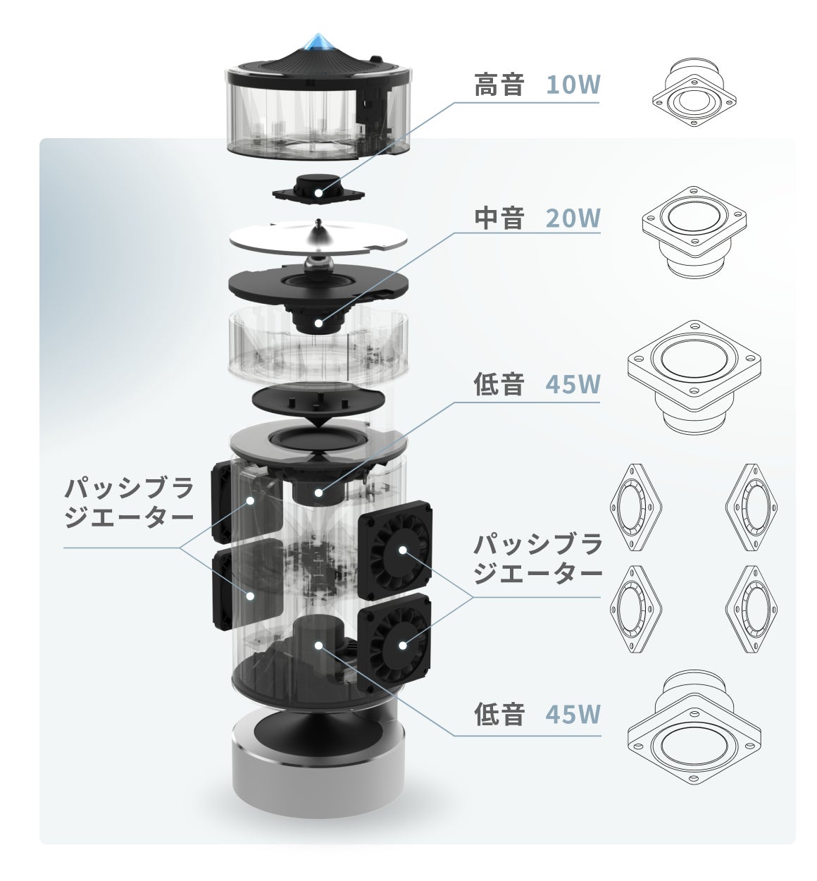 - 8つの内蔵スピーカーで全音域完璧に再現
