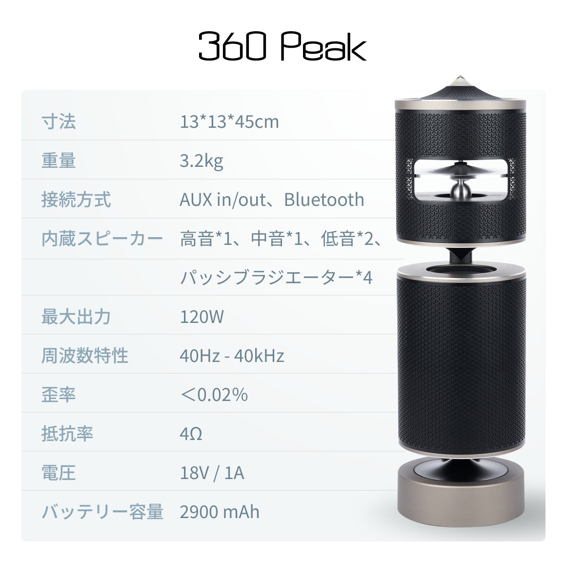 全方位に響き渡るこだわり抜いた極上の音源。海外でシリーズ累計4,000万円以上売れている新感覚3WAYハイレゾスピーカー『360 Peak』ー11月23日(水)より日本展開決定ー