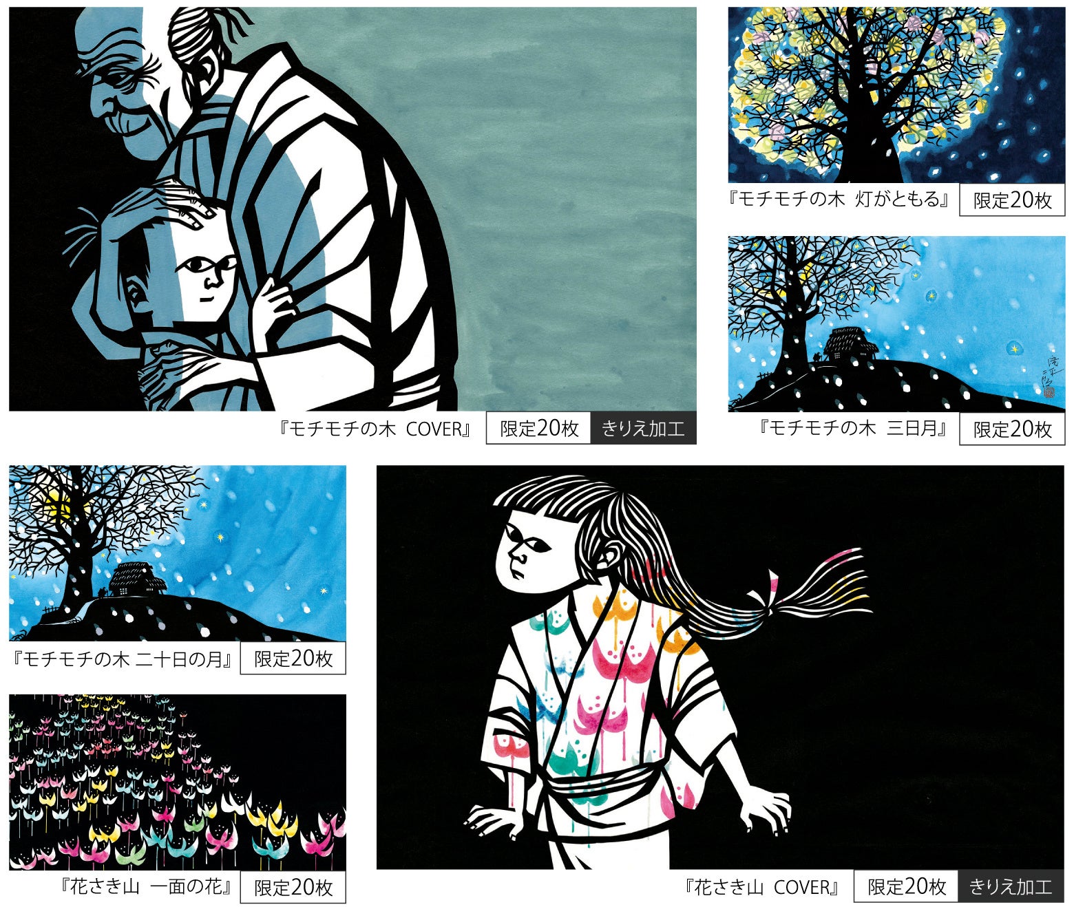 今回、新たに絵本『モチモチの木』『花さき山』から印象的な6点の原画を再現し、各20枚限定販売します。