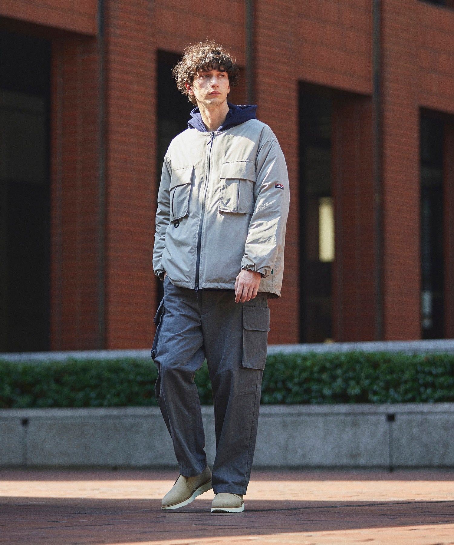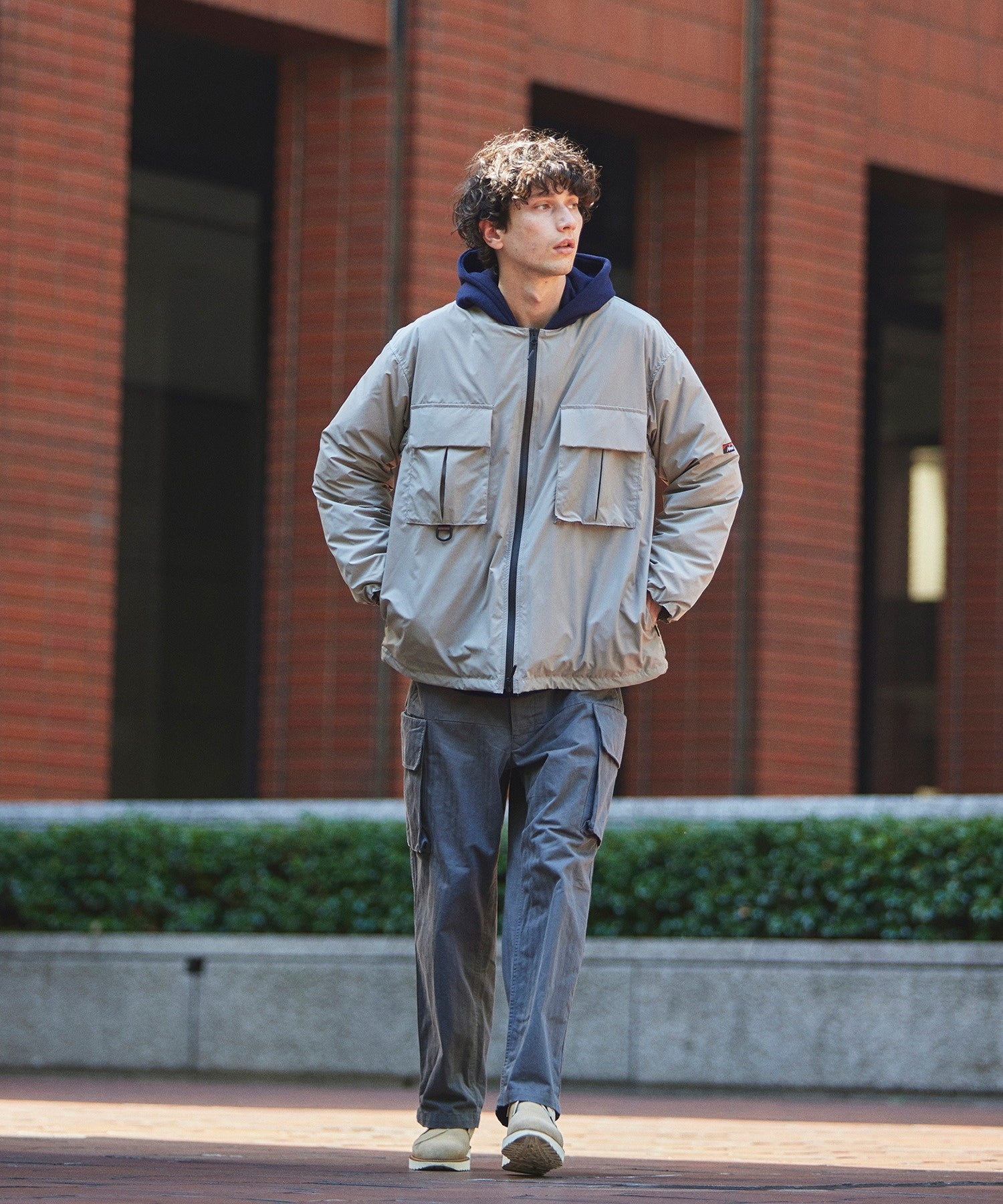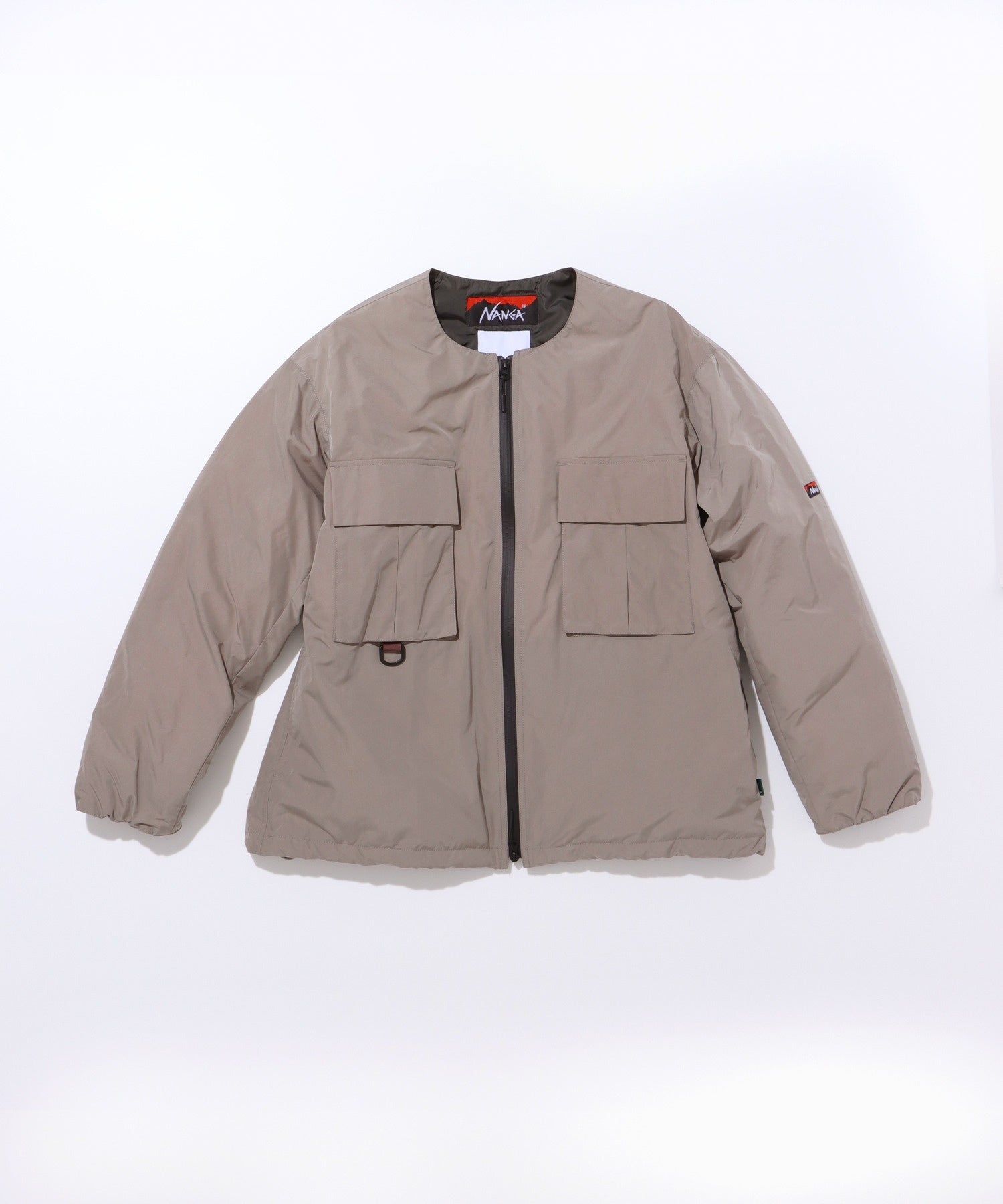 ・23S/Sコレクションで人気を博したFIDELITYのノーカラーブルゾンをベースに、前開きをスナップボタンから止水仕様のファスナーにするなど、よりアウトドアに適した形にアップデート。さらにNANGAのシュラフに使われているダウンを使用し保湿性が高いブルゾンに仕上げた。