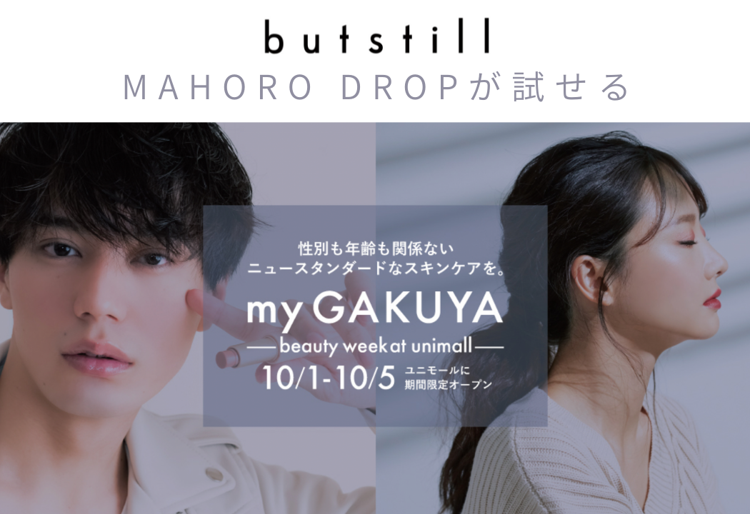 また、2022年10月1日〜5日の間、名古屋ユニモールにて開催されるPOP UPストア、「my GAKUYA」において、オイル美容液「MAHORO DROP(マホロドロップ)」が販売されることをお知らせいたします。