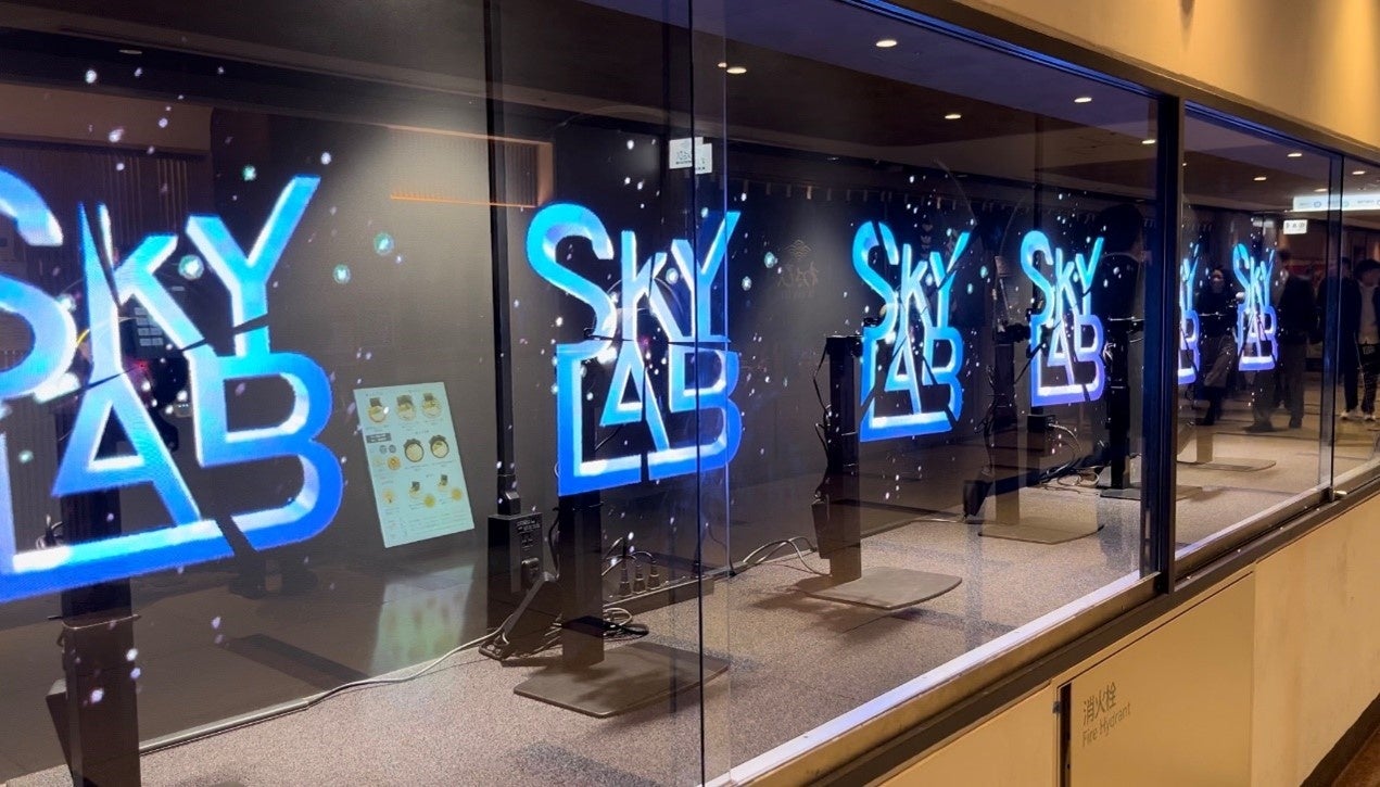3Dホログラムサイネージは、LEDを高密度に並べた4本のブレードを高速回転させ、光の残像現象によって空中浮遊する3次元映像を映し出す新しい技術で、裸眼で立体映像を視認することが可能となります。今回、3次元の仮想空間を創造する3Dホログラムサイネージ「Dimpact® 3D Holo Vision」では大手町ビルヂング屋上のワークプレイス「SKY LAB」の様子や、ロゴなどが映し出されます。