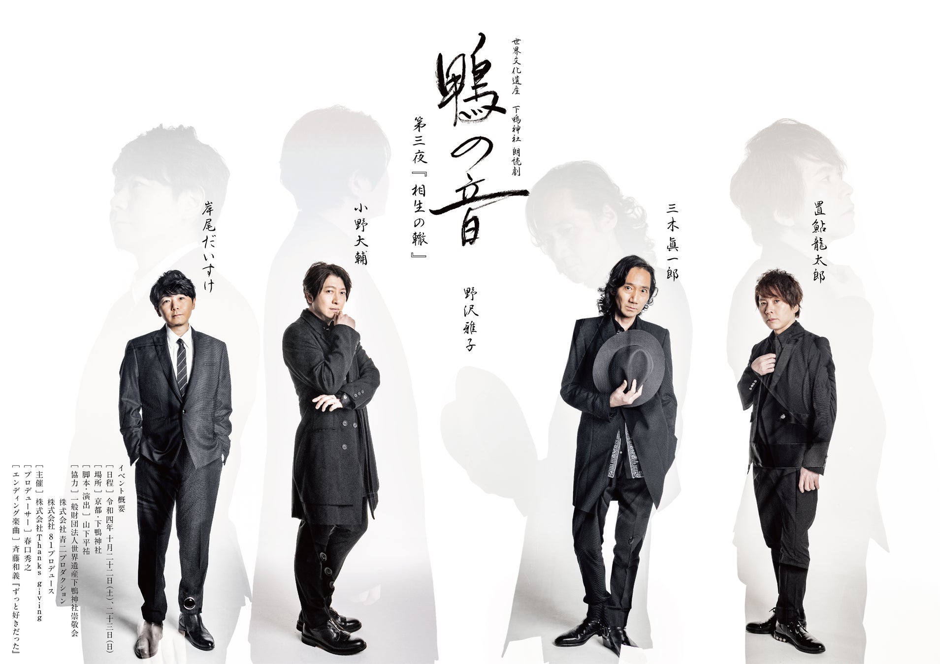 2022年10月開催 世界文化遺産 下鴨神社 朗読劇 鴨の音 第三夜 タイトルは『 相生の轍 』 エンディング曲は斉藤和義「ずっと好きだった」に決定!