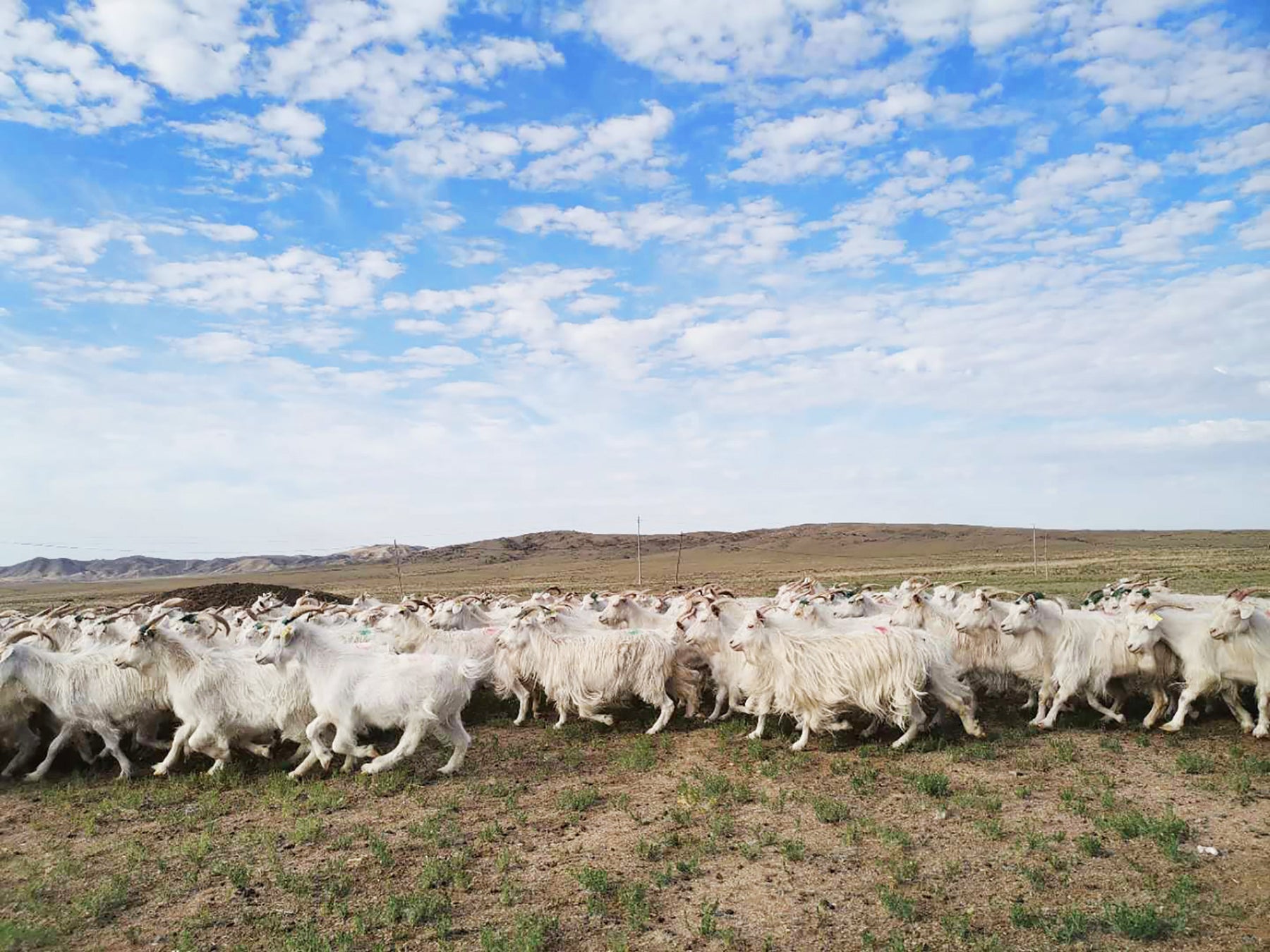 ホリゾンでは、草原で自社牧場(兼:研究牧場)と地域の1140牧民家族と公平な取引の元、カシミヤを受け取っています。