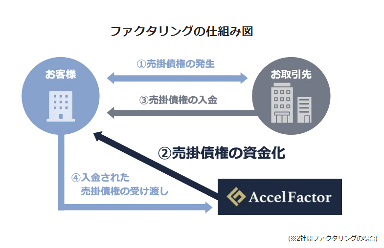 アクセルファクターは、企業が保有する売掛債権を買い取り、即座に現金化する資金調達で企業から信頼を得ています。ファクタリングは借入ではないため、企業のバランスシートに影響を与えずにキャッシュフローを改善することができます。このため、資金繰りが悪化した際にも企業の安定経営をサポートする強力な手段となるのです。