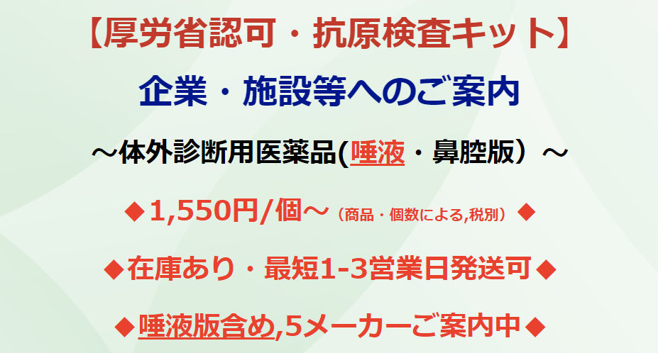 商品:5メーカー・6種類の抗原検査キット(厚労省認可・体外診断医薬品)をご案内中
