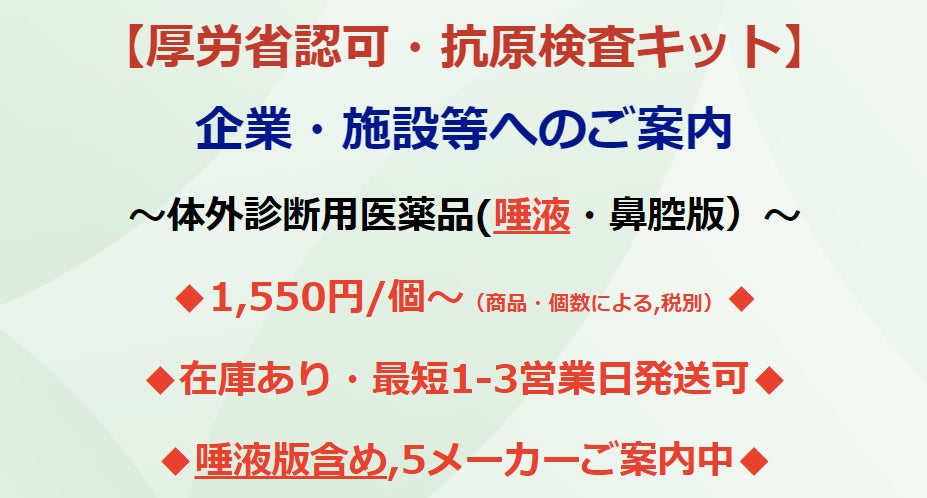 ・弊社は政府の方針・ガイドラインに基づき、医療用医薬品である抗原検査キットのご購入方法等についてご案内しております。