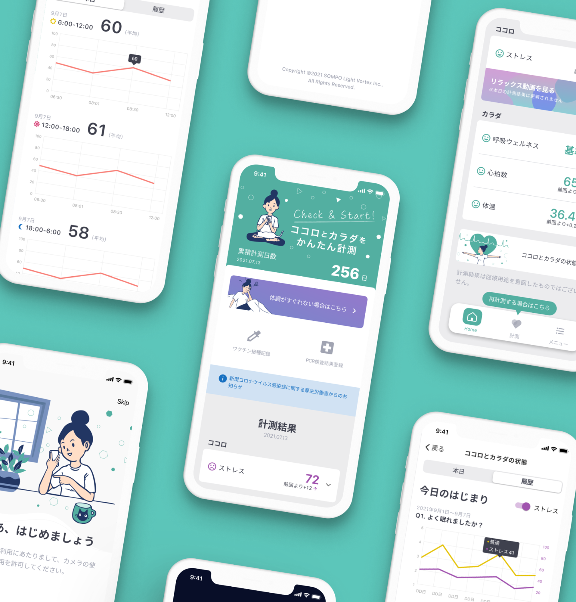 LightCheckerは、スマホを使って僅か60秒でストレス値と呼吸ウェルネス(酸素量)を計測できるアプリです。イスラエルのスタートアップの技術を活用しており、コロナ禍におけるココロとカラダの状態を可視化します。
