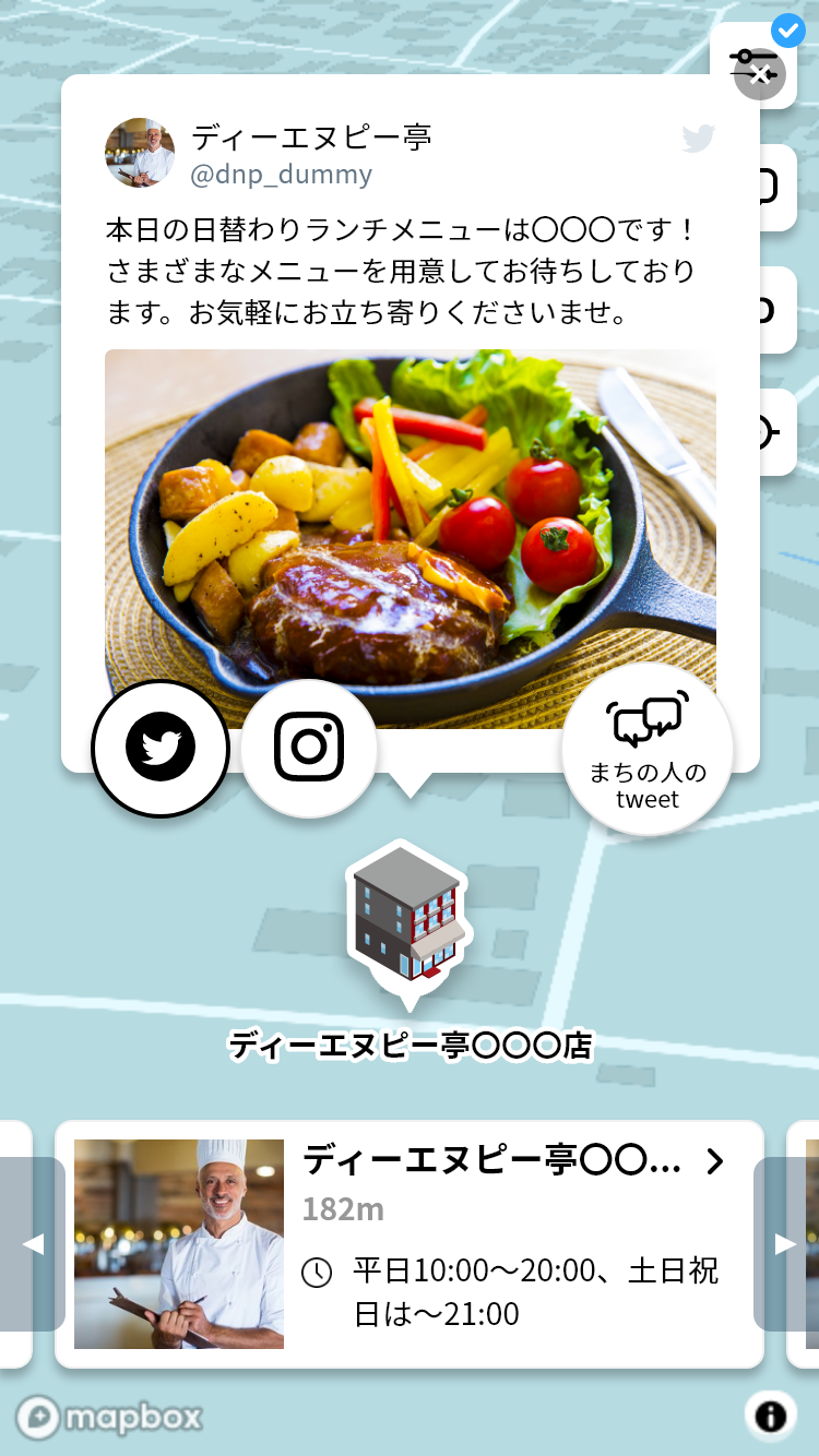 DNP MAPベース地域振興情報発信プラットフォームは、地域の魅力を視覚的に伝え、まちの「今」のホットなスポットの情報をよりリアルタイムに発信できる「地域の魅力に出会うためのメディア」です。