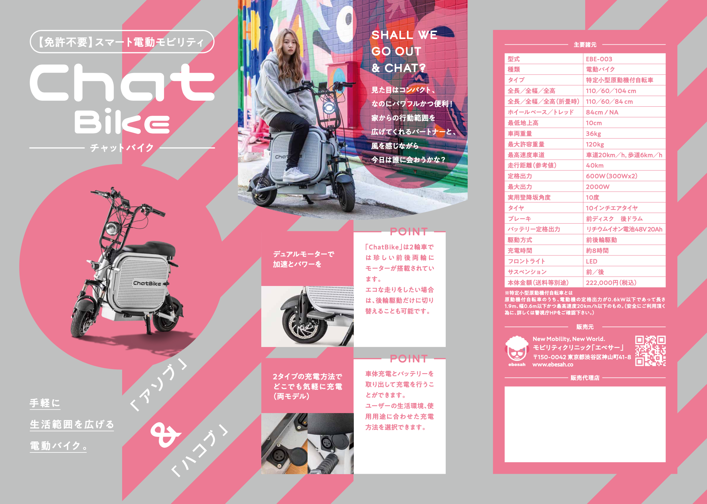 免許不要の特定小型原動機付自転車、ChatBikeとChatKartをこの機会に!!