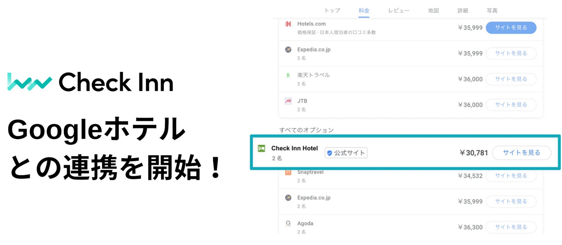 Check Innの自社予約エンジンにて、Googleホテル検索との連携を開始しました。