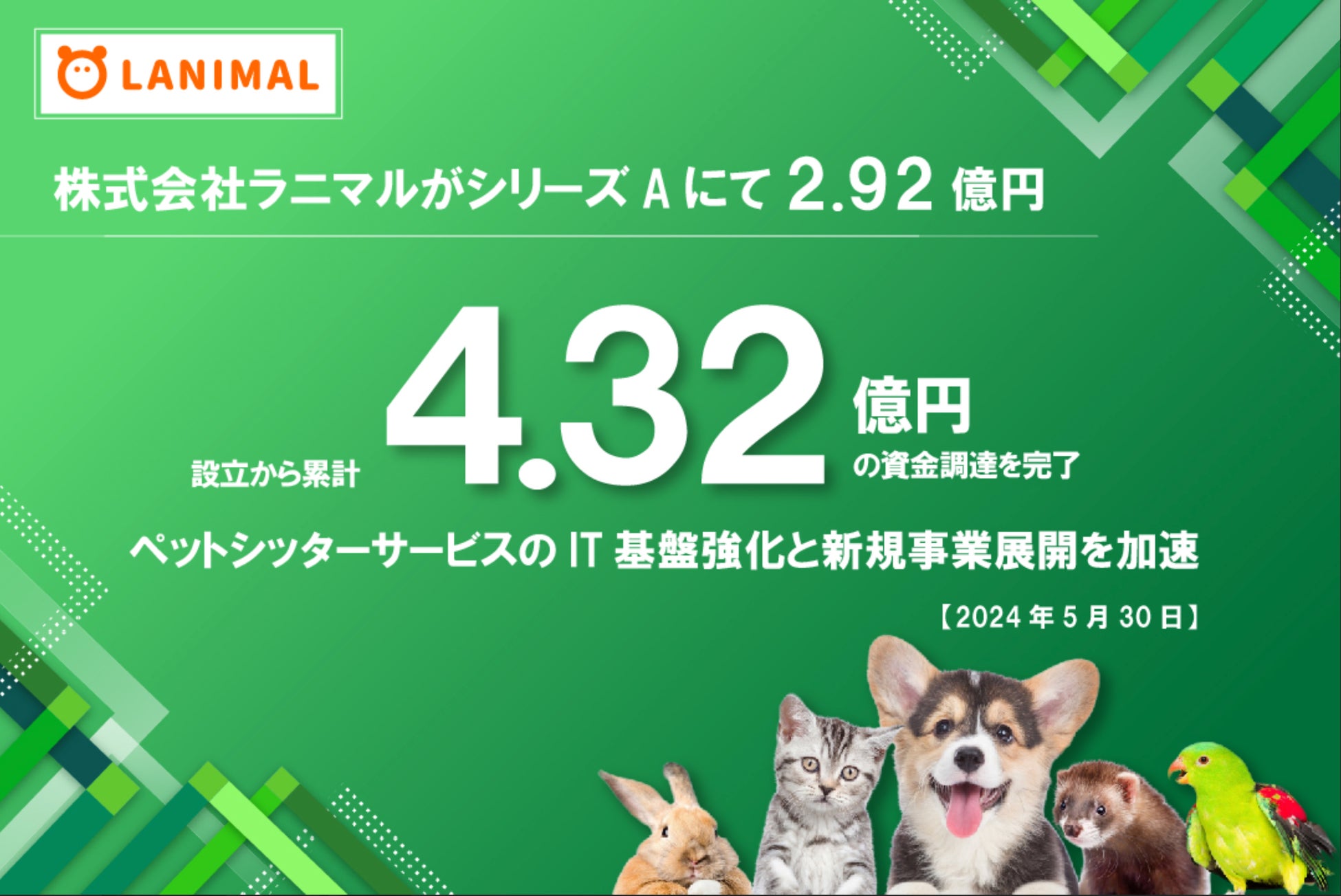 【2024年6月10日】株式会社ラニマルがシリーズAにて2.92億円、設立から累計4.32億円の資金調達を完了|ペットシッターサービスのIT基盤強化と新規事業展開を加速