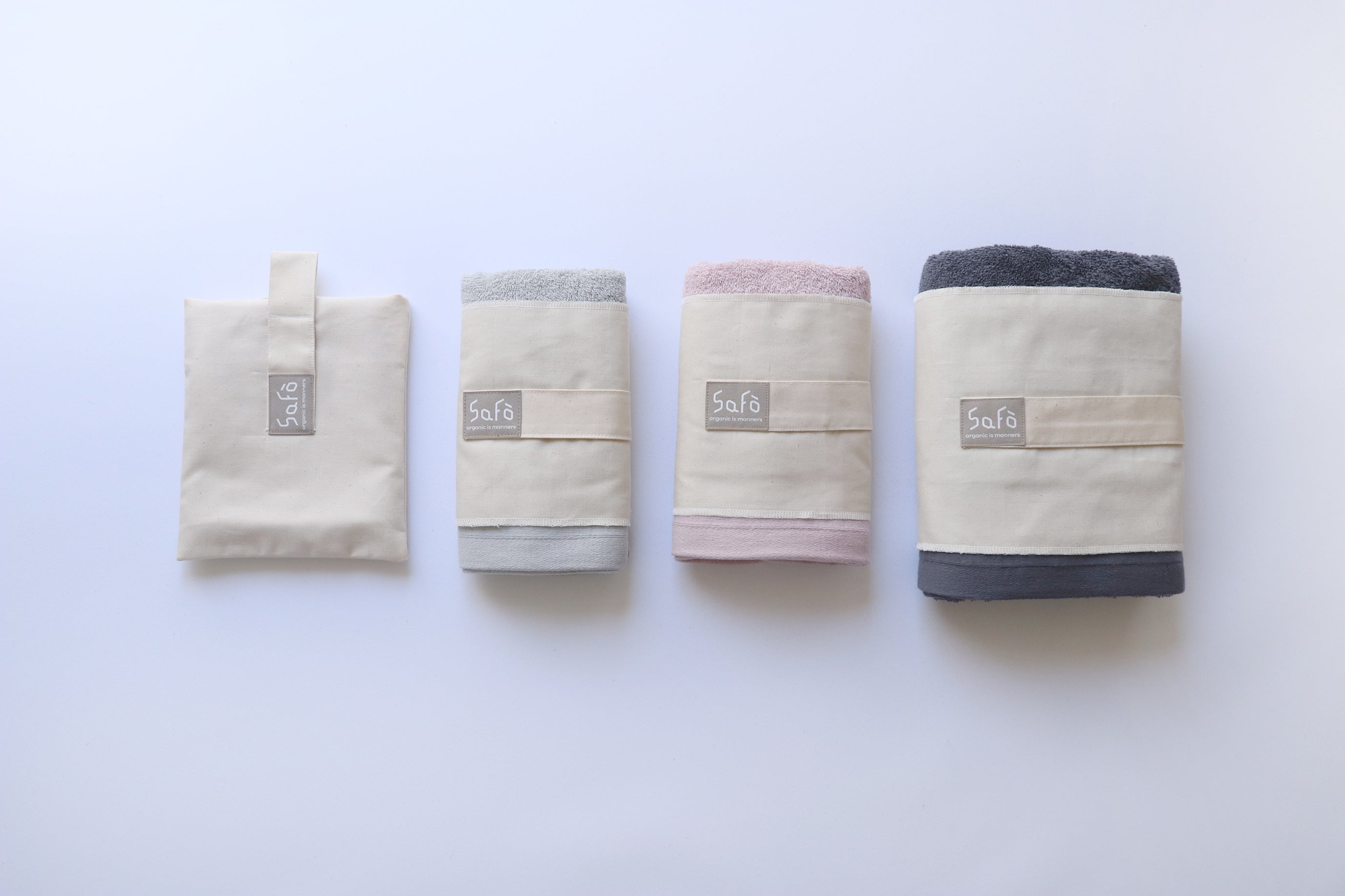 国際認証OCSを取得したオーガニックコットンの温泉タオルです。温泉地で販売されているタオルは軽く、濡れてもすぐ乾く上にかさばらないので収納や持ち運びにも便利です。SaFoでは両端にパイル無しの範囲を工夫し背中を洗うときにもしっかり両手でタオルの端をつかみやすくしています。オーガニックコットン特有の優しい肌ざわりと使いやすいサイズのタオルです。日本の自然の色をモチーフに4色展開しています。